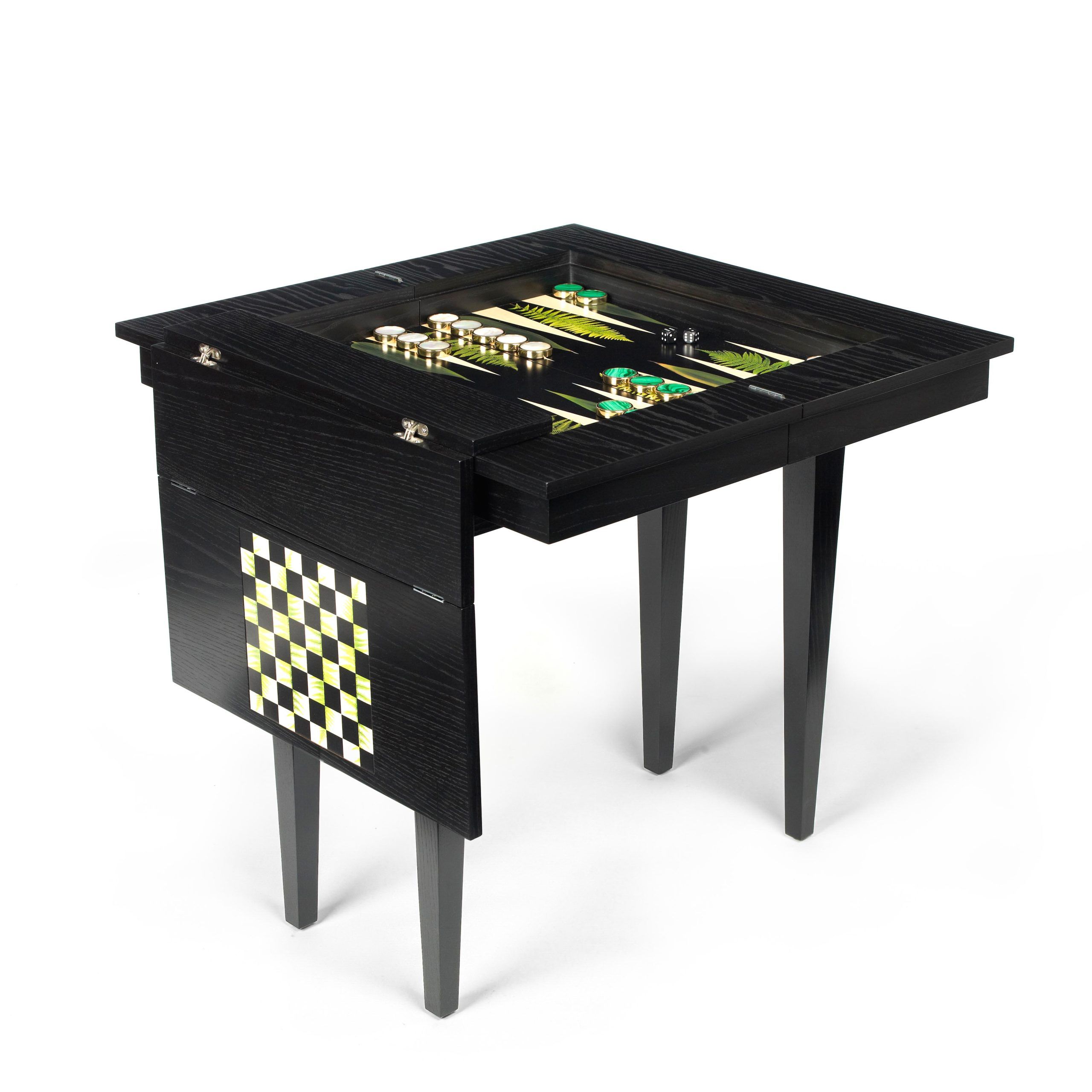 Some may be commissioned and Alexandra’s training as a fine artist has led to a talent of bespoke creativity. In her childhood where she would play backgammon with her step-grandfather in the backstreets of Cairo, she has been accustomed to the creation of unique games. Alexandra Llewellyn Design says: “Enchanted by the game’s inherent poetry of proportion and the harmonious geometry of its pieces and their movements, Alexandra’s training as a fine artist saw her apply that material expertise to a medium she had loved since childhood.”